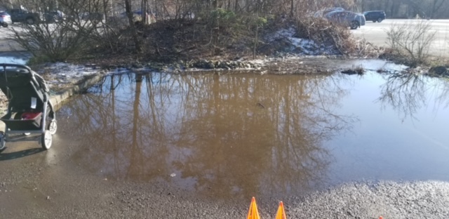 > parking lot) overtopped again yesterday, resulting in water flowing over